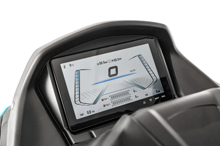 La scheda tecnica parla di un telaio in acciaio e può contare su sospensioni anteriori e posteriori idrauliche. Le ruote sono da 13 pollici, all’anteriore con pneumatico 110/70-13 e al posteriore 110/70-13. Il peso dello scooter elettrico è di 134 kg. 200S monta di serie un impianto frenante con l’ABS che lavora in sinergia con il controllo di trazione TCS per garantire stabilità, precisione e aderenza in tutte le condizioni di guida. Questa due ruote dispone anche di tanta tecnologia. Per la strumentazione troviamo uno schermo touch che oltre a mostrare diverse informazioni dello scooter tra cui anche la pressione delle gomme, offre la navigazione turn-by-turn, Messaggi, notifiche, chiamate e tanto altro. Non mancano nemmeno gli aggiornamenti OTA. La dotazione tecnica prevede pure l’integrazione di una dash cam (i video si vedono attraverso l’app dedicata).
