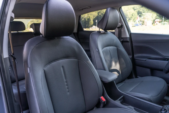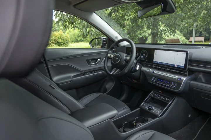 L’abitacolo è stato concepito per essere funzionale. Oggi vanno di moda interni minimalisti con pochi comandi fisici e con l’infotainment che diventa il centro di comando della vettura. Per la Kona, Hyundai ha scelto un giusto compromesso, mettendo comunque a disposizione del conducente l’accesso ad una serie di comandi fisici per le principali funzioni della vettura in modo da poterle utilizzare in maniera intuitiva. Pensiamo, ad esempio, alle impostazioni del climatizzatore. In ogni caso la tecnologia non manca. Infatti, la plancia integra un doppio display panoramico da 12,3 pollici con sistema infotainment di ultima generazione Connected Car Navigation Cockpit di serie, che offre le più recenti tecnologie come la connettività wireless Apple CarPlay e Android Auto e la telematica Bluelink. Non mancano nemmeno gli aggiornamenti OTA.