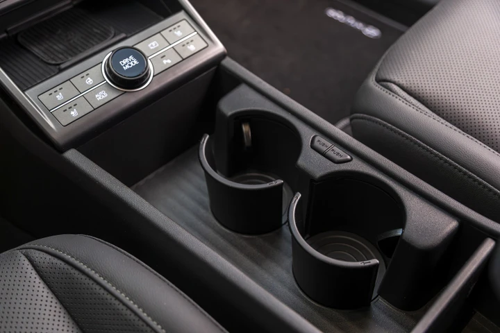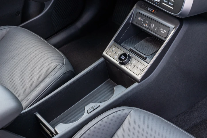 Sul tunnel centrale sono presenti, a seconda degli allestimenti, i comandi per i sedili riscaldati e ventilati, il volante riscaldato, l’auto hold, le telecamere e il rotore per selezionare le modalità di guida che la Kona mette a disposizione. Poco sopra è presente il pad per la ricarica wireless degli smartphone. Lo spazio interno non manca, non solo per i passeggeri ma anche per gli oggetti. Per esempio, molto comodo l’ampio vano presente sul tunnel centrale, con portabicchieri a scomparsa.