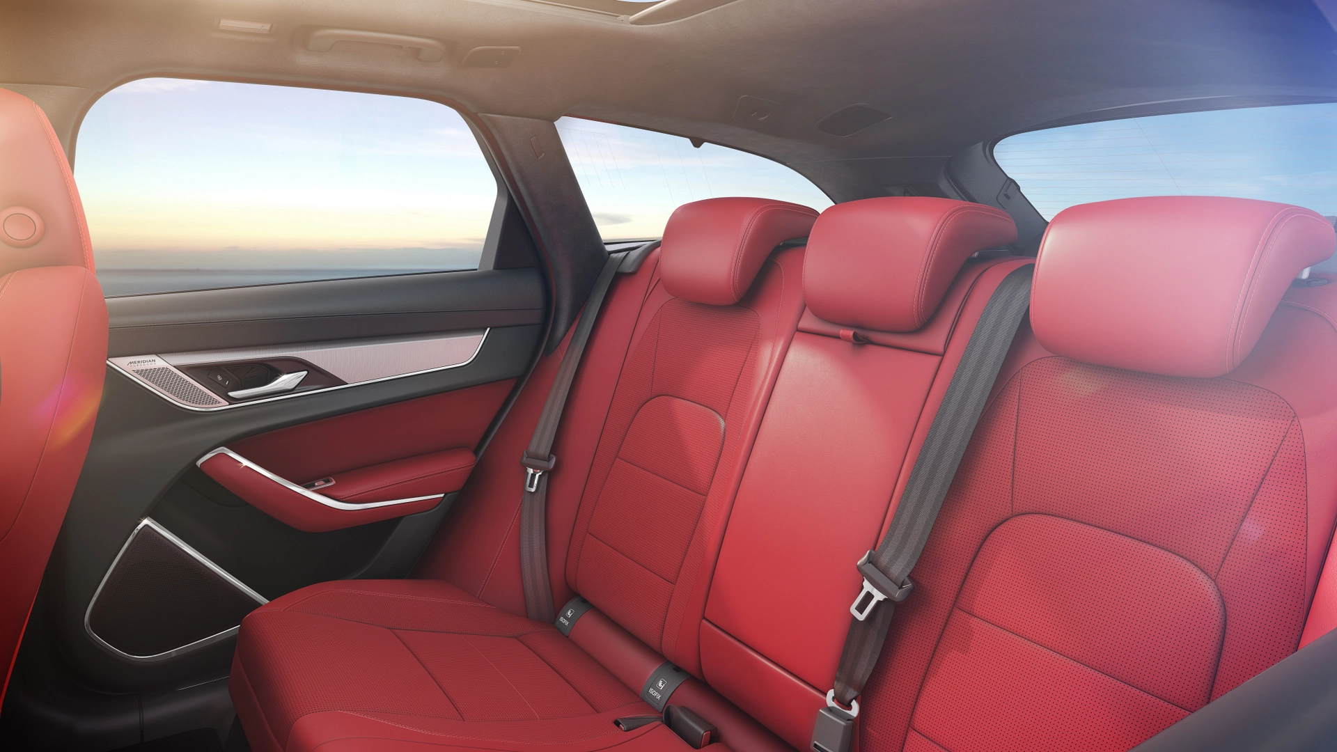 Le più grandi novità si trovano internamente. L'abitacolo, infatti, è stato pesantemente rivisto per migliorarne la qualità. La console centrale è "dominata" dal display da 11,4 dell'infotainment Pivi Pro di Jaguar, che presenta una grafica più nitida e un'interfaccia utente più intuitiva. Ovviamente sono presenti i supporti ad Apple CarPlay e ad Android Auto. Arrivano pure gli aggiornamenti OTA ed un sistema di ionizzazione dell'aria. Disponibile anche il supporto alla ricarica wireless degli smartphone.