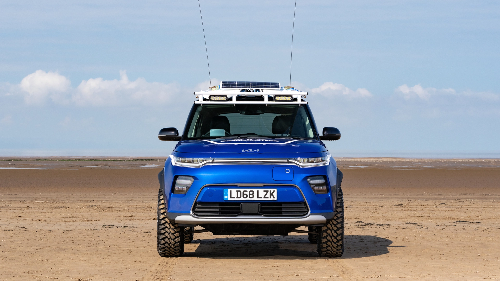 Sul tetto, la Kia Soul EV Boardmasters Edition dispone di un portapacchi in acciaio che può essere facilmente riciclato a fine vita. La forma è stata pensata per poter ospitare senza problemi due tavole da surf Tahe 7'9 Malibu. L'auto dispone di una carrozzeria di colore Neptune Blue con tetto nero a contrasto e con una serie di adesivi di colore bianco. Sul tetto è anche presente un piccolo pannello solare che fornisce energia ad una batteria da 12 V che alimenta dei faretti a LED, un piccolo frigorifero e altri dispositivi elettrici senza intaccare l'autonomia del veicolo.