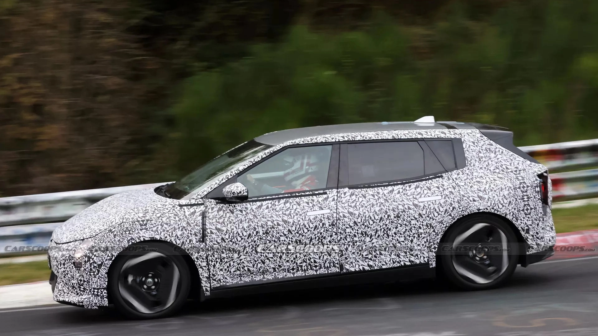 Come si può notare, la vetture presenta forme da hatchback. Pare, infatti, che la casa automobilistica stia sviluppando due varianti di carrozzeria per la sua nuova elettrica per avvicinare più clienti possibili: una in stile fastback di cui abbiamo visto diversi scatti spia in passato e una in stile hatchback.