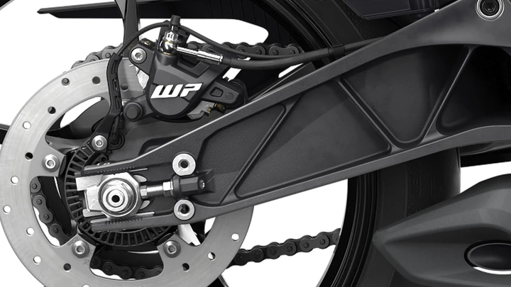Il reparto freni beneficia dell’introduzione del nuovo impianto WP FCR4 con pinze radiali a quattro pistoncini e dischi maggiorati, che garantiscono un’azione più decisa e costante. A completare il pacchetto c’è l’ABS cornering di serie, con funzione Supermoto per chi vuole spingersi un po’ più in là nella guida sportiva.