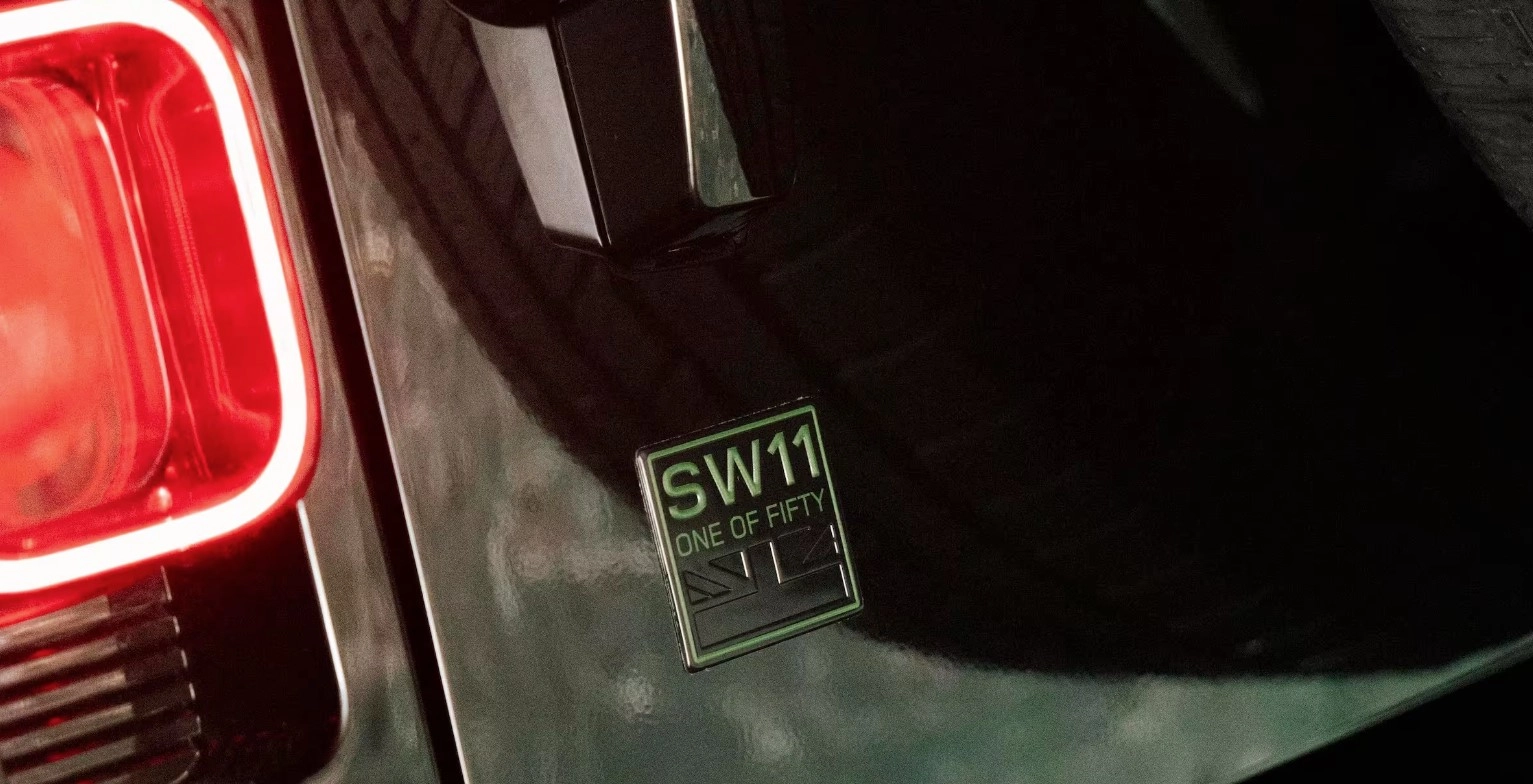 Questo modello in edizione limitata è basato sulla Defender 90 X-Dynamic SE e si caratterizza per alcuni dettagli esclusivi. Troviamo rifiniture in nero per il corpo vettura con i cerchi e inserti English Green a contrasto. La tinta English Green è presente pure sulla scritta Defender sul cofano così come nei dettagli della griglia e delle prese d'aria laterali. Il portellone posteriore è stato rifinito con il badge "SW11 ONE OF FIFTY". Chi acquisterà questo modello potrà scegliere se mantenere o eliminare la ruota di scorta esterna.