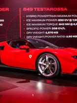 La gamma si articola sulla versione 849 Testarossa, caratterizzata da una dotazione di serie completa e da finiture di pregio. Non sono previste alternative in termini di carrozzeria o alimentazione: la proposta rimane fedele alla configurazione coupé con motorizzazione tradizionale, senza opzioni ibride o elettriche, riservando così l'esperienza di guida a chi cerca autenticità e purezza tipiche delle sportive classiche.