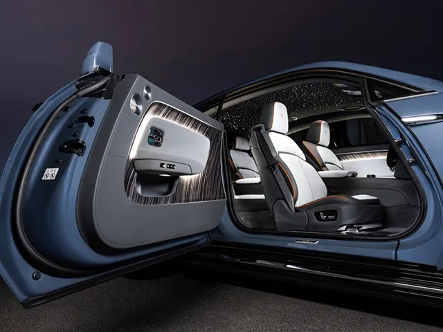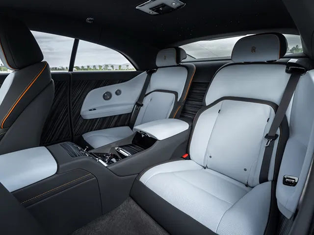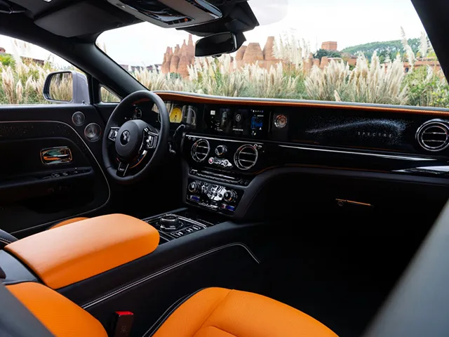 La lunghezza della Spectre, tra le più ampie della categoria, si traduce in un abitacolo spazioso che accoglie i passeggeri in un ambiente raffinato e rilassante. Il passo generoso e l'altezza accentuata contribuiscono a una straordinaria abitabilità, soprattutto nella zona posteriore, rendendo ogni viaggio piacevole anche per chi occupa i sedili dietro. La capacità del bagagliaio, superiore alla media delle coupé di lusso, permette di affrontare viaggi prolungati con tutto il necessario, senza sacrificare la comodità interna.