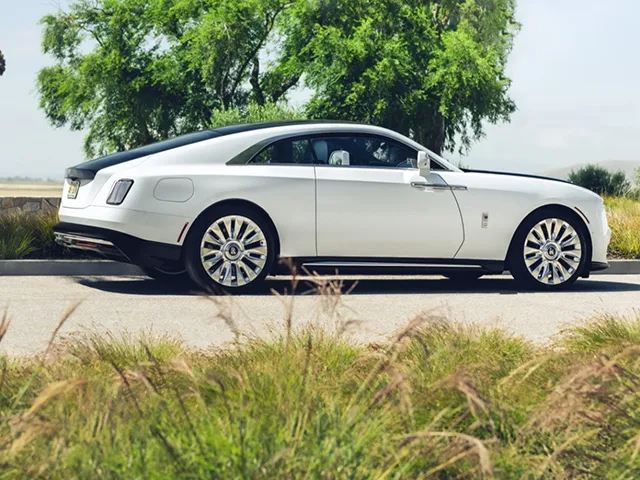 La Rolls-Royce Spectre si presenta come una coupé di lusso dalla personalità decisa, in cui le dimensioni generose e le linee eleganti si fondono per creare un impatto visivo di grande rilievo. La silhouette slanciata e le proporzioni importanti trasmettono immediatamente una sensazione di esclusività e comfort, caratteristiche fondamentali per chi desidera viaggiare senza compromessi e godere di un'esperienza superiore a bordo.