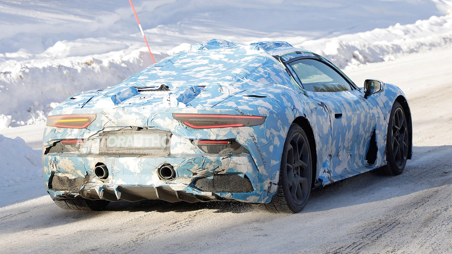 Maserati MC20, nuove foto spia della versione Cabrio durante i test invernali