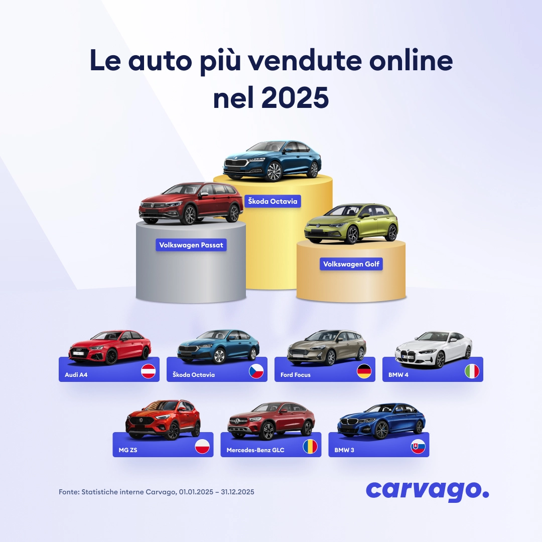 Mercato dell’usato online: i dati Carvago sui modelli più acquistati nel 2025