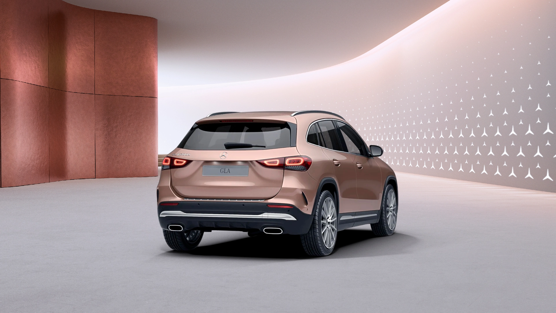 La Mercedes GLA di colore Rosé Gold si caratterizza anche per gli interni in pelle nera e i cerchi AMG da 20 pollici multirazze. La GLA nel colore Blue Denim, invece, offre interni in pelle marrone e cerchi AMG da 20 pollici multirazze. Nella versione di colore Rosso Patagonia MANUFAKTUR, troviamo anche interni in ARTICO/tessuto e cerchi in lega AMG da 20 pollici multirazze verniciati in nero e torniti con finitura a specchio.