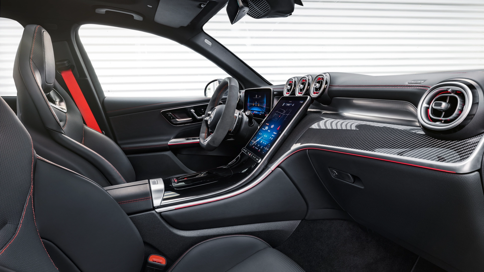 Per quanto riguarda, invece, l'abitacolo, all'interno sono presenti sedili AMG rivestiti in pelle Artico e microfibra Microcut AMG. A richiesta sono disponibili sedili rivestiti in pelle nappa. Il volante AMG è in pelle nappa su AMG GLC 43 4MATIC o in pelle nappa/microfibra MICROCUT su AMG GLC 63 S E PERFORMANCE.