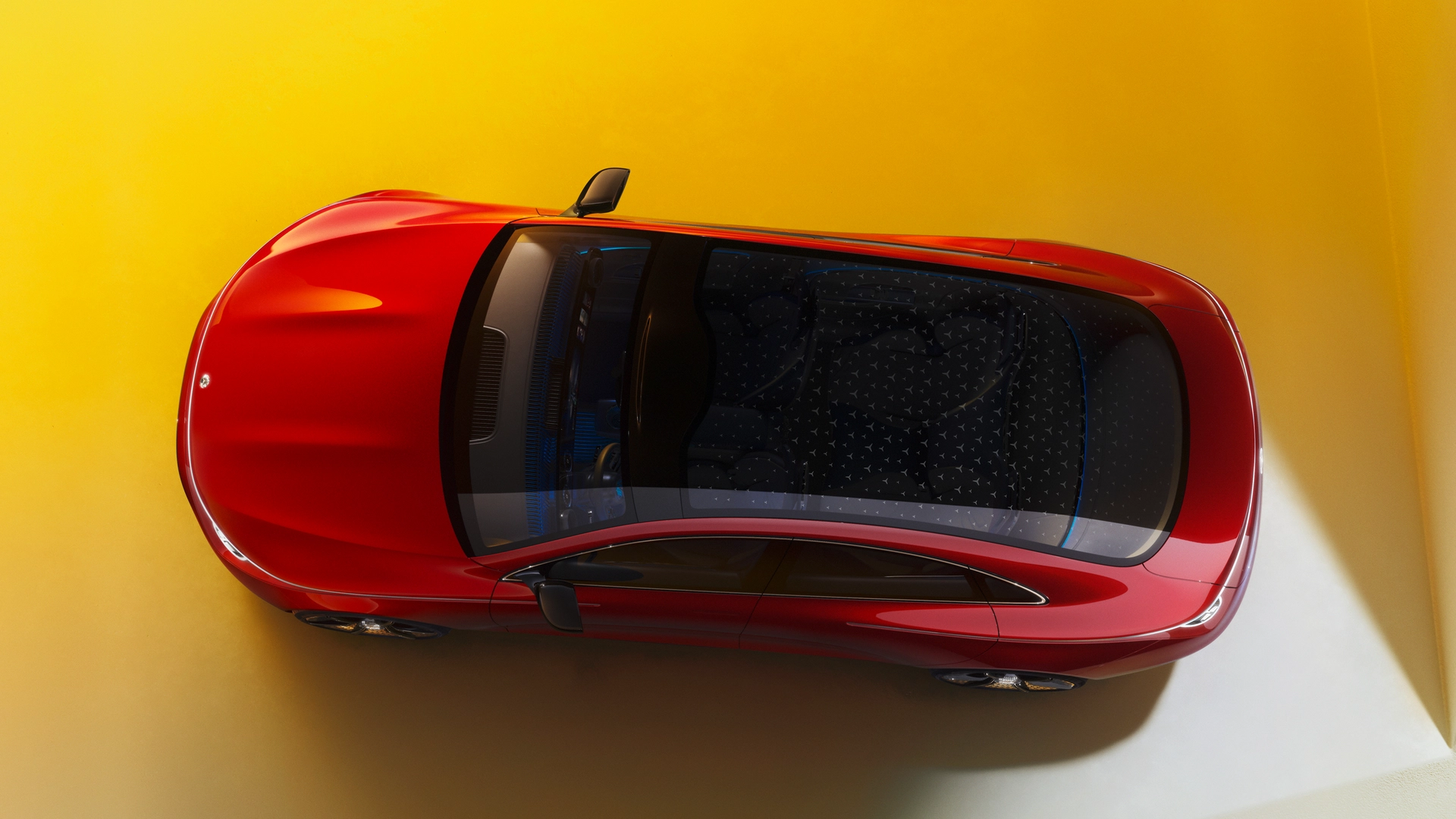 Per quanto riguarda gli interni, il passo lungo della vettura ha permesso di offrire molto spazio ai passeggeri, soprattutto a quelli posteriori. Inoltre, l'ampio tetto panoramico in vetro, enfatizza lo spazio a disposizione. Nuova Mercedes Concept CLA offre anche tantissima tecnologia grazie ad un'evoluzione del sistema infotainment MBUX che qui dispone del nuovo sistema operativo proprietario MB.OS. La grafica dell'interfaccia, invece, deriva da quella della Vision EQXX.