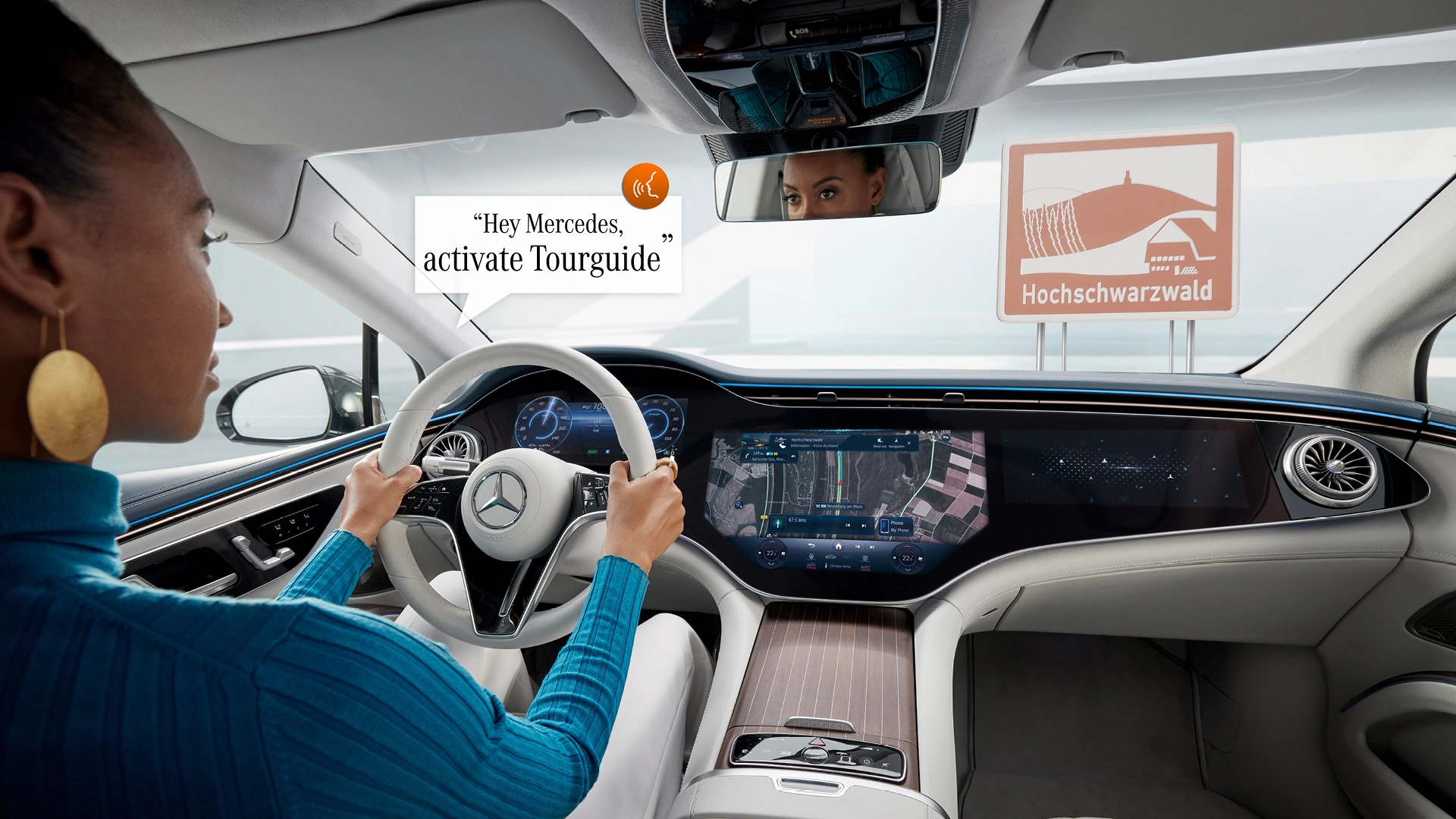 Tourguide, al momento, è disponibile in Germania ma presto arriverà anche nel Regno Unito ed in Francia. Questo servizio si gestisce attraverso dei comandi vocali e fornisce informazioni utili su castelli, musei e altri punti d'interesse. Novità in arrivo anche per il display del passeggero anteriore. Con l'aggiornamento sarà possibile inviare l'audio dei filmati riprodotti sullo schermo di destra all'impianto della vettura, senza dover indossare le cuffie.