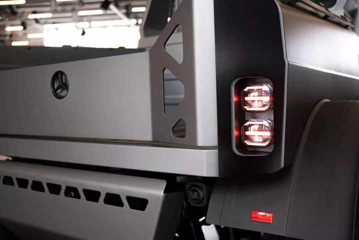 Questo speciale esemplare si riconosce per un look più ricercato. Il veicolo adotta una tinta grigio opaco e monta cerchi da 20 pollici. Presenti una serie di elementi aggiuntivi rispetto all’Unimog classico e non mancano modifiche alla griglia e al paraurti. Inoltre, troviamo una nuova illuminazione a LED. Niente specchietti laterali classici. Al loro posto la tecnologia MirrorCam con telecamere esterne e monitor, una soluzione particolarmente utile, secondo Mercedes, nei percorsi in off-road e in città. All’interno dell’abitacolo troviamo un tocco di lusso con rivestimenti in pelle, cuciture a contrasto, illuminazione ambientale a LED e tappetini in pelle.