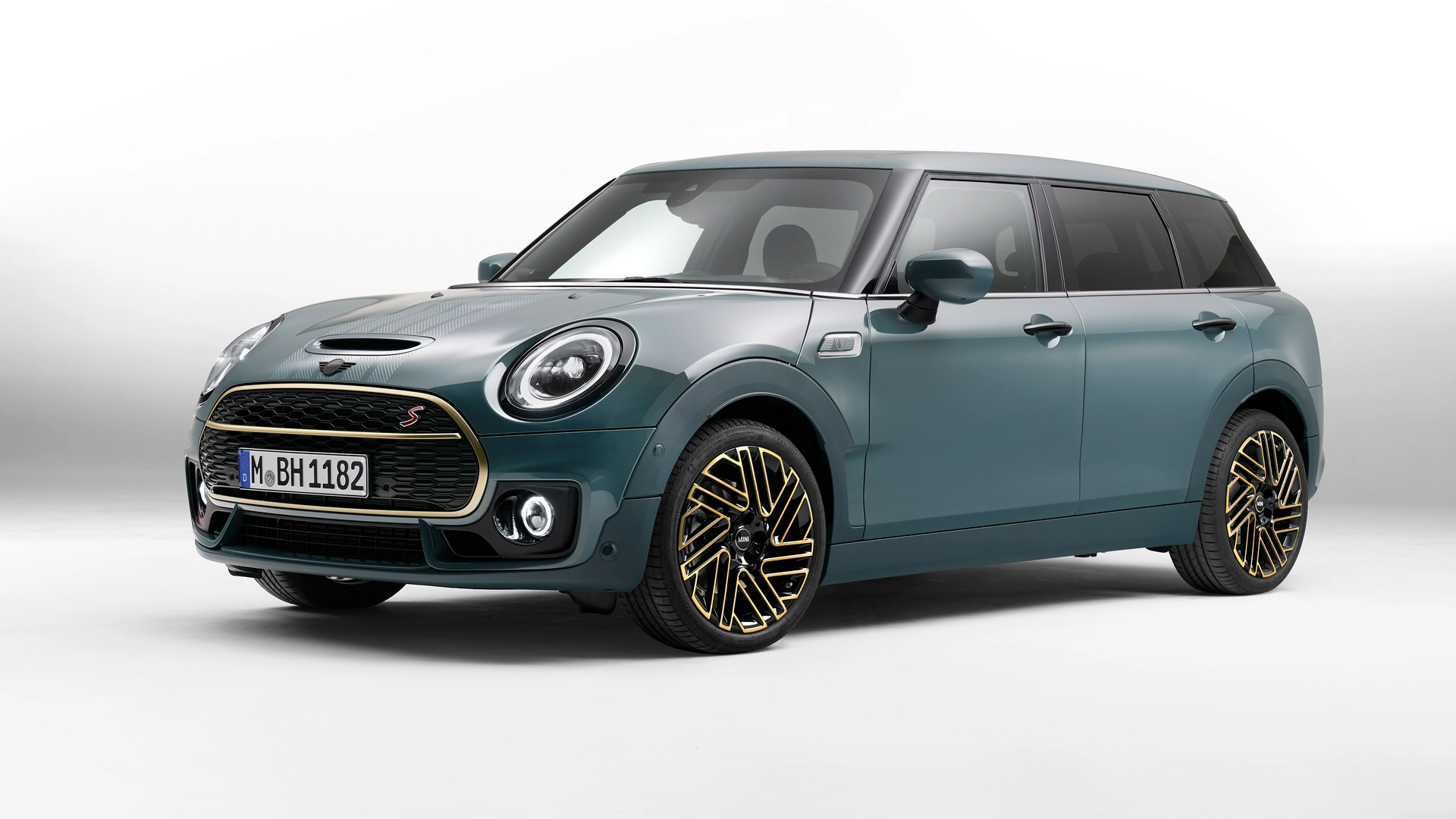 L'auto adotta cerchi da 18 pollici nel design Untold Spoke con superfici bicolori nella combinazione Jet Black/Refined Brass. Una verniciatura nera per il tetto e le calotte dei retrovisori esterni è disponibile come optional. All'interno dell'abitacolo troviamo i sedili sportivi MINI Yours Leather Lounge Sage Green.