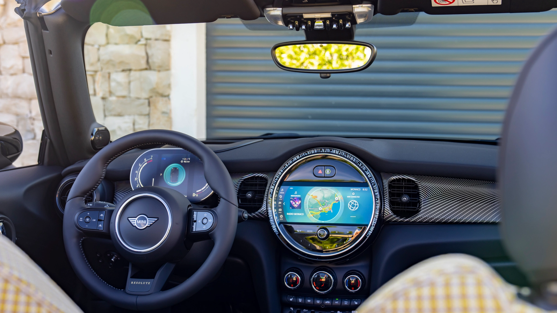 Aprendo la portiera della Mini Cooper S Resolute Edition l’occhio cade subito sul battitacco con il nome dell’allestimento in bella vista. Una volta a bordo, invece, si viene accolti dai sedili sportivi in tessuto Black Pearl/Light Chequered. I pannelli sulla plancia poi, sono di colore nero, impreziositi da motivi geometrici che donano all’insieme l’aspetto di un abito gessato, riprendendo la struttura delle strisce sul cofano. A completare il tutto ci pensa poi il volante in pelle Nappa con scritta Resolute nella parte bassa, mentre per quanto concerne l’infotainment, la Resolute Edition punta sull’ultima generazione del sistema operativo Mini.