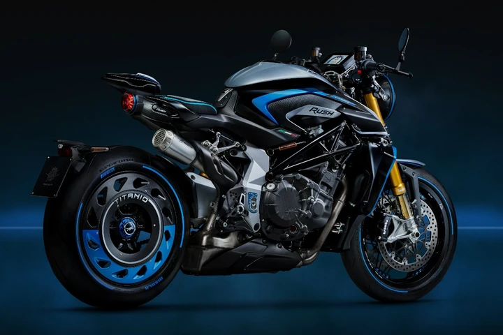 I dettagli in alluminio anodizzato Blu Titanio sono il dado della ruota posteriore, la copertura del fanale posteriore, la copertura del faro anteriore, il tappo del serbatoio, le protezioni delle leve, le piastre di regolazione del perno del forcellone e la targhetta numerata “RUSH Edizione Limitata XXX/300". La MV Agusta Rush Titanio sarà prodotta in soli 300 esemplari numerati individualmente. Il prezzo? 44.900 euro, con inizio della produzione previsto per luglio 2026.