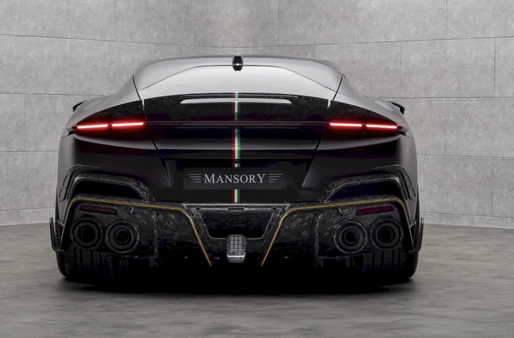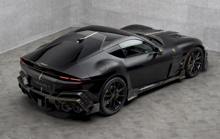 Inutile dire che anche le minigonne laterali, i parafanghi anteriori e i montanti sono stati rivisti con l’aggiunta di parecchia fibra di carbonio forgiata e, come se non bastasse, Mansory ha aggiunto un grande diffusore posteriore per migliorare l’aerodinamica del veicolo e ridurre la resistenza. Il colore della carrozzeria è un minaccioso nero opaco e la presenza di grandi cerchi VF.5 in alluminio forgiato leggero conferisce ancora più cattiveria.