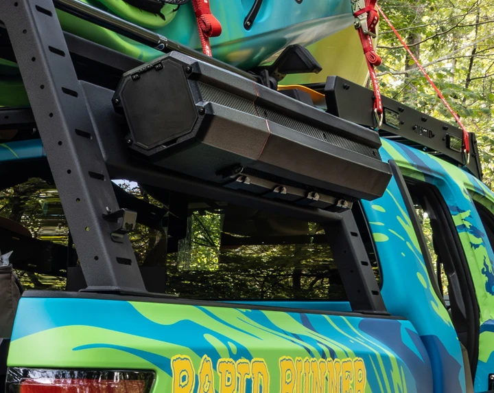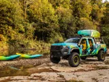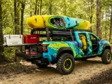 Innanzitutto, Nissan Frontier Rapid Runner fa a meno delle portiere tradizionali e al loro posto troviamo delle portiere tubolari. Nuovi sono anche i paraurti anteriori e posteriori. Inoltre, questa particolarissima versione del pickup è dotata anche di passaruota allargati che permettono di contenere i nuovi cerchi con pneumatici Yokohama GEOLANDAR X-MT 37×12.50R17 specifici per l’off-road. Il pickup è anche equipaggiato con un portapacchi sul tetto con luci a LED aggiuntive. Sul cassone è presente un altro portapacchi che si abbina a quello sul tetto per poter trasportare senza problemi alcuni kayak. E proprio per chi ama divertisti con i kayak, Nissan ha pensato ad una serie di accessori aggiuntivi che troviamo nel Frontier Rapid Runner. Parliamo ad esempio di un vano porta pagaia e muta, una doccia portatile montata su di un supporto e pannelli solari per ricaricare l’attrezzatura.