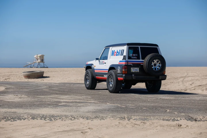Questa versione speciale della Nissan Patrol può contare anche su nuove sospensioni, cerchi NISMO da 17 pollici e pneumatici Yokohama GEOLANDAR da 35 pollici. L’estetica del fuoristrada è stata personalizzata con una livrea specifica rosso-bianco-blu e con i loghi Mobil 1. Davanti possiamo notare anche la presenza di fari supplementari molto importanti per la guida in condizioni di scarsa visibilità.