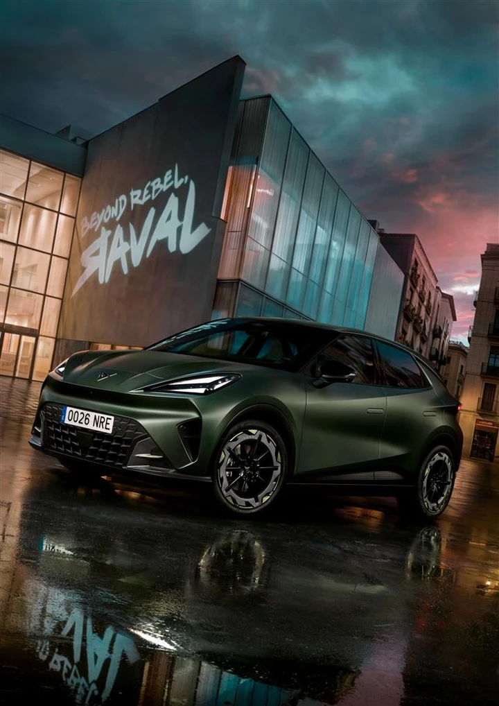 Progettata, sviluppata e prodotta a Barcellona sulla piattaforma MEB+, la Raval prende il nome dal vivace quartiere El Raval, simbolo di spirito giovane e creatività dirompente. Esteticamente è un concentrato di muscolarità e dinamismo racchiuso in appena 4,04 metri di lunghezza. Il frontale è dominato dal caratteristico “muso di squalo”, con linee nette e il logo CUPRA illuminato che, insieme ai fari Matrix LED, conferisce alla vettura un aspetto decisamente high-tech.