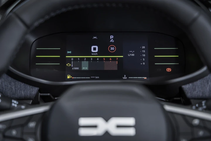 Passiamo all’abitacolo dove troviamo riproposto lo stile a T rovesciata, come la firma luminosa, sulle nuove bocchette dell’aria. La plancia e le porte anteriori sono inoltre dotate di nuovi rivestimenti in tessuto blu nell’allestimento Expression e denim blu nella versione Journey. Con il restyling sono stati resi disponibili tessuti inediti per i sedili, la plancia e i rivestimenti delle porte. Dacia ha rivisto pure il volante per migliorare l’ergonomia. Sulle motorizzazioni dotate del cambio automatico troviamo sul tunnel centrale il nuovo selettore per la trasmissione E-Shifter, oltre ai paddle dietro al volante (disponibili esclusivamente su Eco-G 120 con cambio automatico).