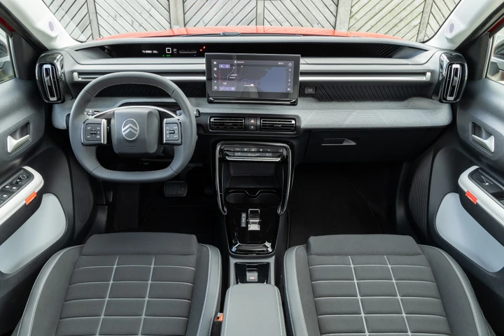 Passiamo alla Citroen C3 che propone uno stile minimalista. Attenzione, il modello base non ha l’infotainment da 10,25 pollici e dispone invece di un supporto per smartphone integrato che consente di trasformare il dispositivo mobile in una una sorta di centro di controllo grazie ad un’app dedicata. La strumentazione digitale? C’è, anche se non “tradizionale". Infatti, le informazioni essenziali di marcia vengono mostrate all’interno di una sottile palpebra collocata in posizione rialzata. Citroen parla di una sorta di Head-Up Display che proietta le informazioni su uno sfondo nero.