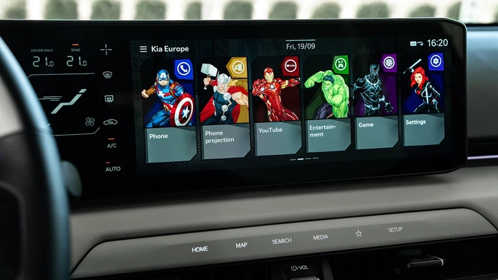 Salendo a bordo della nuova KIA EV4, spicca una plancia dominata da un ampio pannello in cui sono integrati il display da 12,3 pollici della strumentazione digitale e quello del sistema infotainment delle stesse dimensioni. Tra loro un ulteriore piccolo display da 5,3 pollici dedicato al climatizzatore le cui funzioni, però, si possono gestire anche attraverso dei comodi comandi fisici nella parte centrale della plancia. Il sistema infotainment offre l’accesso ad alcuni contenuti digitali avanzati come Netflix, Disney+ e YouTube. Presente anche il supporto gli aggiornamenti OTA. L’integrazione di Google Places nel sistema garantisce dati di navigazione attendibili riguardo alla disponibilità dei parcheggi, agli orari di apertura, ai prezzi e comprende anche le recensioni di altri utenti. EV4 utilizza, al posto delle chiavi tradizionali, la Digital Key 2 che permette di sbloccare il veicolo con il proprio smartphone o smartwatch compatibile e di condividere l’accesso da remoto con altre persone, come familiari o amici.