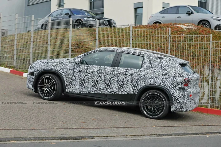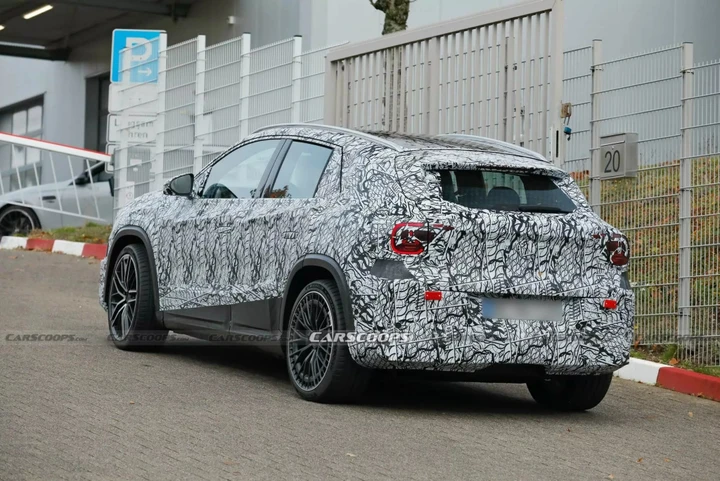 La nuova Mercedes AMG GLA protagonista delle foto spia appare ancora camuffata con pellicole che coprono la carrozzeria. Tuttavia, si vedono diverse cose interessanti. Rispetto alla GLA “base" che abbiamo già visto in diversi scatti spia, questa ha cerchi in lega specifici AMG più grandi da cui si intravede un impianto frenante maggiorato. L’assetto appare più basso rispetto alla GLA “standard" a rimarcare ulteriormente il DNA più sportivo di questo modello. Il camuffamento non permette di vederlo ma probabilmente ci saranno alcune modifiche estetiche che serviranno anche a dare un look più aggressivo al SUV elettrico. Le foto non mostrano l’abitacolo. La nuova GLA dovrebbe comunque offrire interni simili a quelli della nuova CLA. Per la versione AMG possiamo aspettarci sedili sportivi e rivestimenti dedicati.