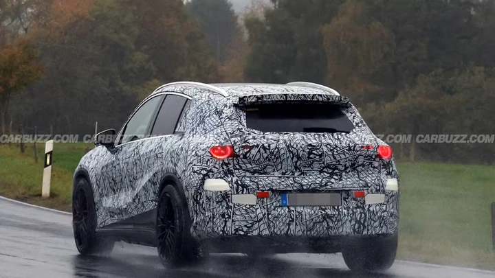 La nuova GLC elettrica ha portato al debutto divere novità tra cui un nuovo design della griglia che sarà un elemento distintivo di tutte le nuove elettriche Mercedes. Le immagini della nuova Mercedes AMG GLC elettrica mostrano una vettura ancora camuffata con pellicole che coprono a carrozzeria. Tuttavia, si notano diverse cose interessanti tra cui uno spoiler attivo alla fine della linea del tetto, nuove minigonne laterali e soprattutto cerchi in lega di grandi dimensioni che “nascondono" un impianto frenante maggiorato. Questo modello disporrà quindi di un body kit aerodinamico dedicato che contribuirà a rendere il look della nuova AMG GLC elettrica anche più sportiveggiante.
