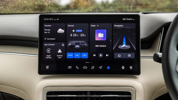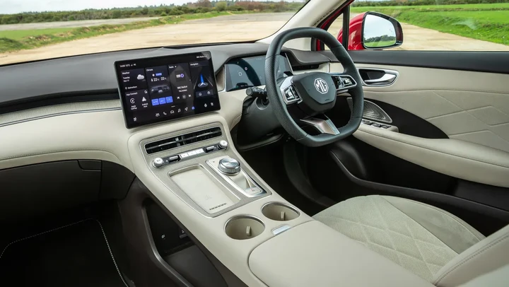 Salendo a bordo troviamo un ambiente minimalista. Nuova MGS6 EV propone ovviamente anche tanta tecnologia. Dietro al volante a 3 razze c’è un quadro strumenti digitale da 10,25 pollici, mentre centralmente sulla plancia è stato collocato il display da 12,8 pollici del sistema infotainment che può contare sui supporti ad Apple CarPlay e Android Auto. La dotazione di serie prevede anche il pad per la ricarica wireless degli smartphone. Negli allestimenti top di gamma c’è anche un head-up display.