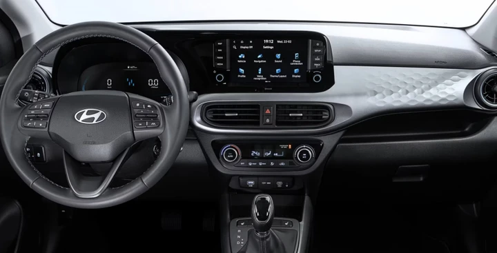 Salendo a bordo della Hyundai i10 troviamo una plancia razionale ma comunque moderna dove ovviamente non può mancare la tecnologia. C’è infatti un quadro strumenti da 4,2 pollici e un sistema infotainment con display touch da 8 pollici. Al di sotto dello schermo centrale sono state collocate le bocchette per la climatizzatore e ancora più sotto i comandi per il clima. A seconda dell’allestimento scelto, la citycar offre una dotazione che include anche porte USB-C.