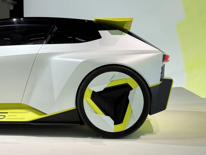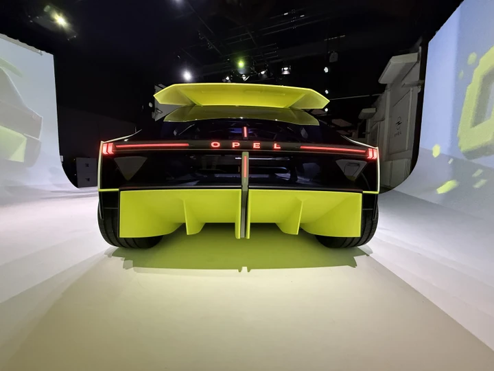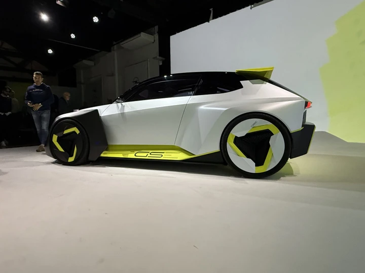 Più bassa e larga dell’Opel Corsa stradale che tutti conosciamo, la concept è estremamente muscolosa e ricca di dettagli aerodinamici spinti, tra cui lo spoiler e il diffusore adattano la deportanza in base alle diverse situazioni di guida. Ogni dettaglio è racing, come gli elementi triangolari ispirati alla storica Opel Manta 400, e i grandi cerchi diversi per asse: quelli anteriori da 21 pollici sono neri e gialli, quelli posteriori da 22 pollici bianchi e gialli. Le gomme sono firmate Goodyear e le sospensioni Bilstein regolabili.