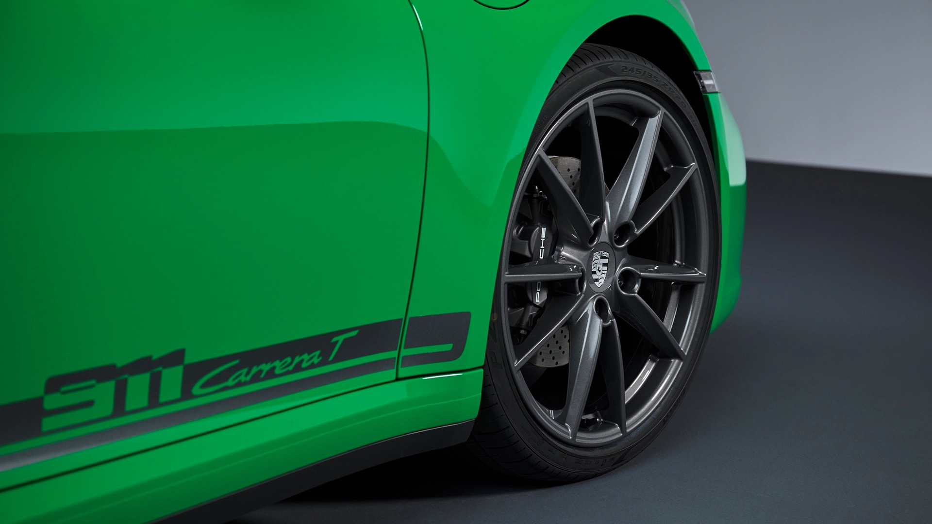 La sportiva può contare di serie anche sul pacchetto Sport Chrono e sul telaio sportivo PASM (-10 mm). Su richiesta è disponibile anche l'asse posteriore sterzante. La 911 Carrera T dispone anche di cerchi Carrera S grigio titanio da 20 pollici anteriori e da 21 pollici posteriori con pneumatici di dimensioni 245/35 ZR 20 (anteriori) e 305/30 ZR 21 (posteriori).