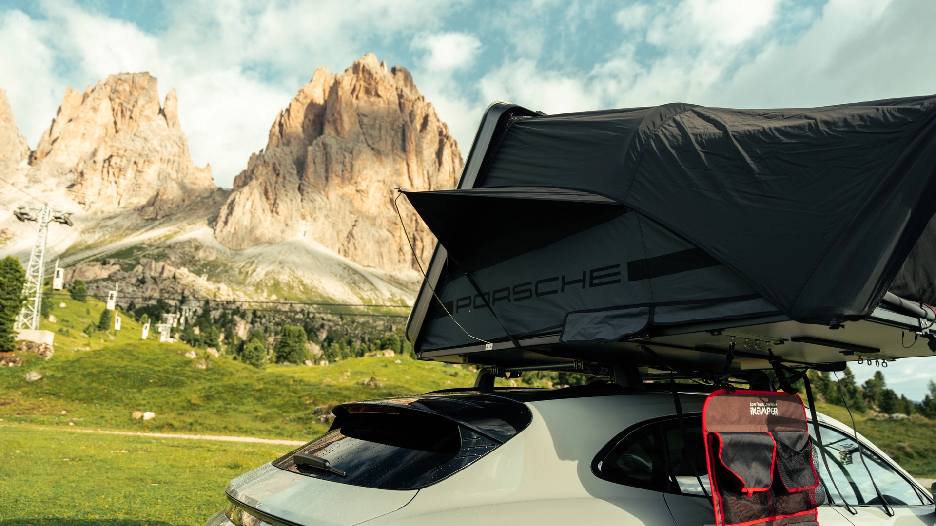 Abbiamo partecipato alla terza tappa del “Porsche On Board" che si è svolta tra Cortina e il Passo Sella. Oltre all’opportunità di poter guidare l’elettrica Taycan Cross Turismo tra le curve dei passi dolomitici, il marchio tedesco ha organizzato al Passo Sella la Roof Tent Experience per poter passare la notte in tenda sopra l’elettrica. Già perché tra i molteplici accessori che la casa automobilistica offre per le sue vetture, c’è anche una tenda da tetto.