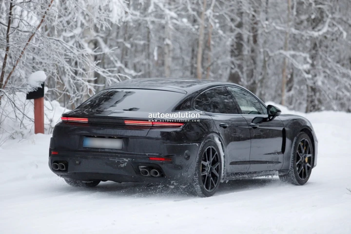 La terza generazione della Posche Panamera era stata svelata nel novembre del 2023. Si sta quindi avvicinando il momento di ricevere un restyling che possa consentire a questo modello di poter continuare a competere sul mercato. I test sono già in corso come dimostrano queste foto spia che mostrano un muletto della Panamera fotografato sulle strade innevate del Nord Europa. Un aggiornamento che non dovrebbe limitarsi ad essere solamente estetico ma che dovrebbe portare anche novità per l’abitacolo e forse anche per le motorizzazioni. Ci si aspetta che sul mercato arrivi nel 2027.