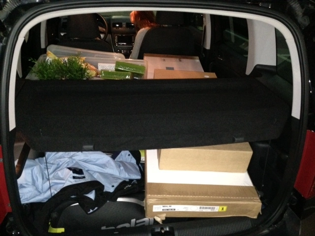 Lo spazio di frenata? Minimo, anche con un carico abbondante. Quanto abbondante? Per farvelo capire, abbiamo inaugurato lo spazio Ikea nelle nostre prove, caricando completamente il baule della Skoda Yeti con due cassettiere, un borsone da tennis, sacchetti e sacchettoni abbattendo tutto l’abbattibile.