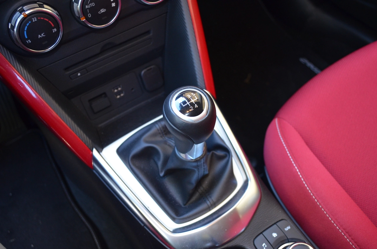 Mazda 2: bella da vedere fuori, quindi, ma molto intrigante anche negli interni, rossi nel nostro caso. I dettagli della plancia riportano il design al centro dell´attenzione degli stilisti Mazda, che ci consegnano una sottile linea rossa capace di percorrere l´intera superficie, nascondendo al centro la bocchetta del climatizzatore (monozona, efficace, automatico).