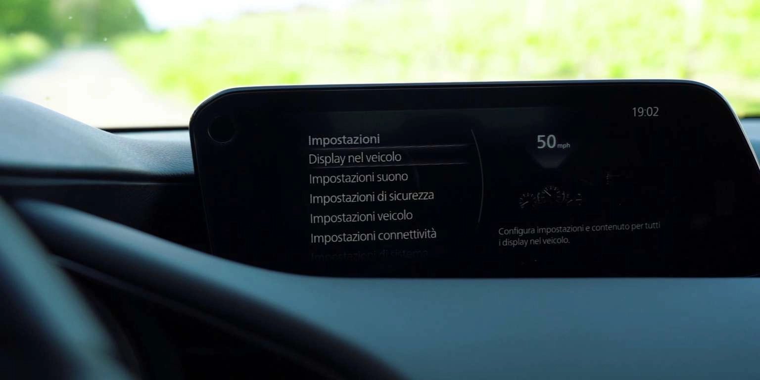 Come fuori, anche dentro i designer mazda hanno optato per la filosofia “less is more”, riducendo ai minimi termini il numero degli elementi fisici con cui il conducente deve interagire: oltre ai tasti sul volante e ai comodi pulsanti fisici per la gestione del clima, troviamo l’ormai classico rotore per la gestione del sistema MZD Connect, la cui interfaccia è costituita da un grande schermo a sviluppo orizzontale da 8,8 pollici.