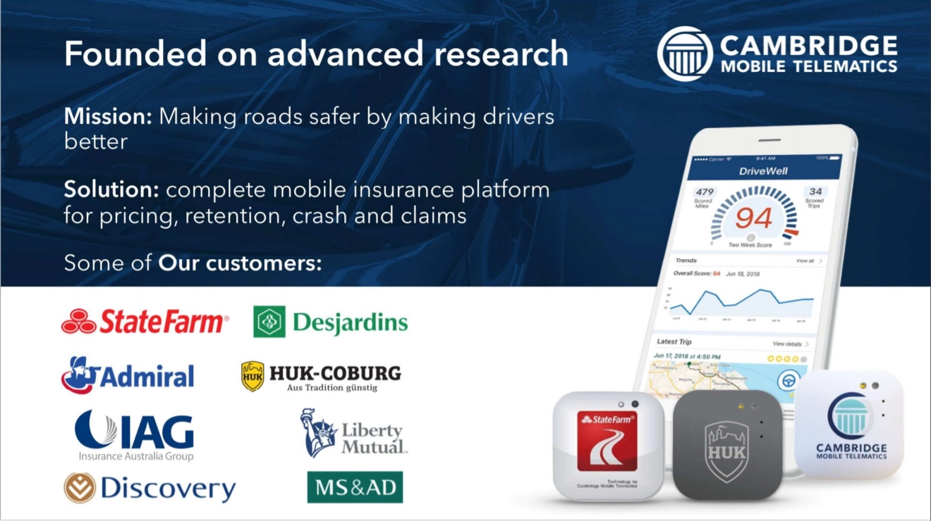 La mission di Cambridge Mobile Telematics è aiutare gli automobilisti a comprendere i rischi che si assumono al volante e di conseguenza contribuire a rendere le strade del mondo più sicure. Grazie alla piattaforma DriveWell di CMT è stato possibile ridurre la guida distratta del 35% e l’eccesso di velocità del 20%, diminuendo il tasso di incidenti in tutto il mondo.