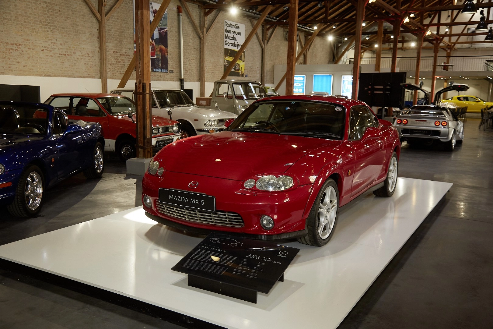 Tra i pezzi in mostra ci sono la Mazda R360 del 1962, lo stesso anno del tre ruote Mazda K360 e della Mazda Carol in esposizione. Presenti anche una Mazda 323 del 1977, il veicolo commerciale Mazda Bongo (1966) e Mazda 616 Capella.