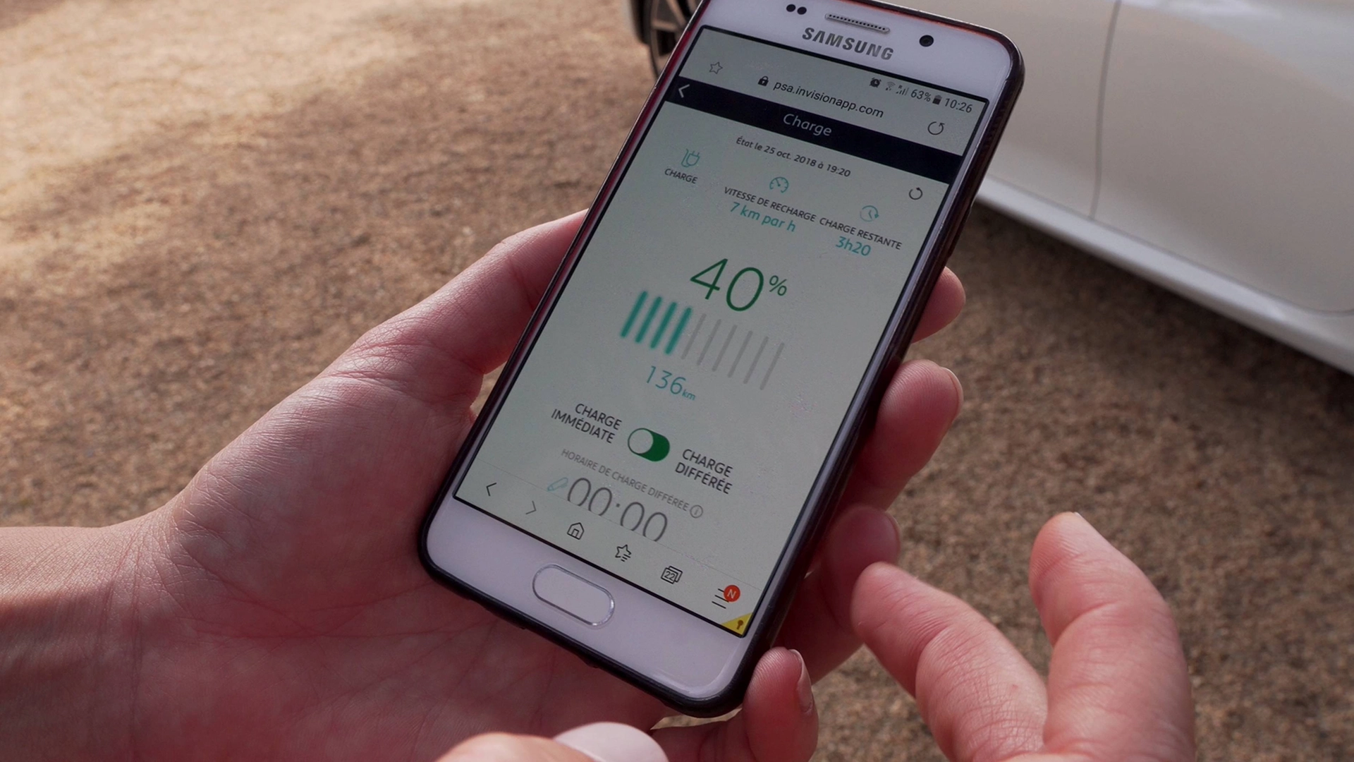 Sullo schermo centrale, Peugeot 208 elettrica aggiunge una schermata relativa allo storico consumi e rigenerazioni, gestione dei flussi (carica e scarica) e programmazione della ricarica e della climatizzazione. Le informazioni sullo stato di carica, ad auto spenta, sono sempre visibili sulla strumentazione digitale che indica il tempo residuo al completamento, autonomia e percentuale batteria. Lo schermo entra in risparmio energetico dopo alcuni secondi ma aprire l'auto (o la portiera) attiva nuovamente la visualizzazione.