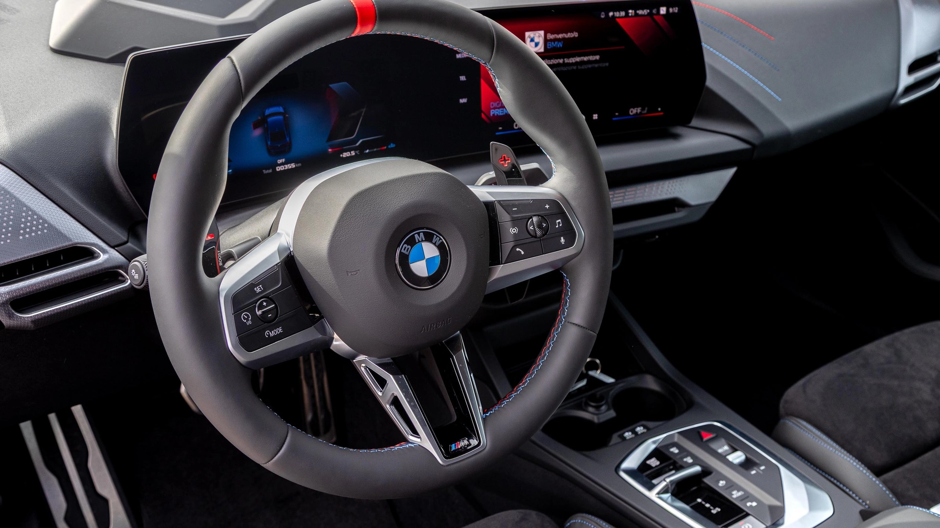 In contrasto con questa filosofia minimalista, BMW ha scelto saggiamente di mantenere tasti fisici sul volante, posizionati sulle due razze principali, che garantiscono un’ergonomia eccellente e un accesso rapido alle principali funzioni di guida. Il volante stesso, sebbene ben rifinito e con una buona impugnatura, può risultare leggermente spesso per chi preferisce una corona più sottile.