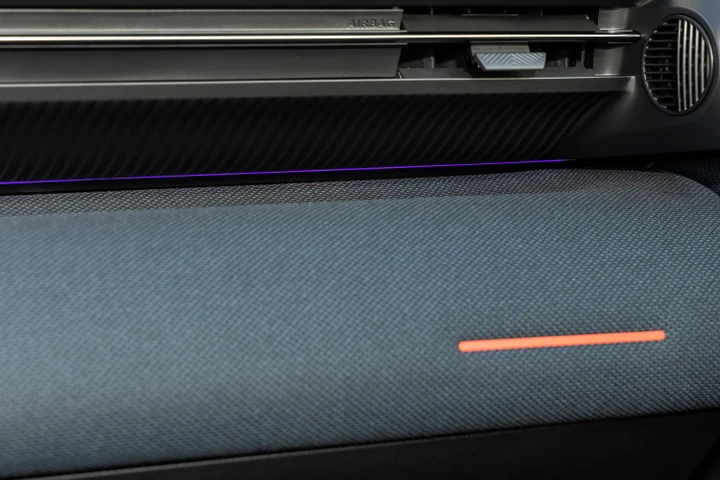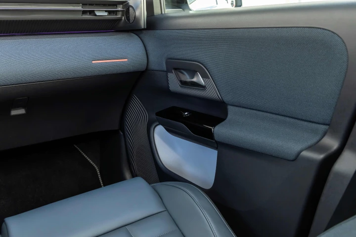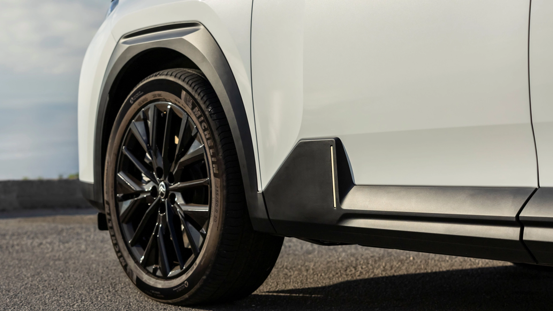 Il linguaggio stilistico riprende quello del concept che anticipò l’uscita del modello, con fari composti da tre elementi distintivi che si uniscono al centro nel nuovo logo del marchio tramite un fascione nero. Nel modello che abbiamo provato, essendo dotato di motore termico, si trova poi una presa d’aria al frontale sotto il logo, ovviamente assente nella versione 100% elettrica.