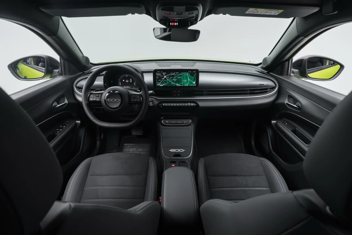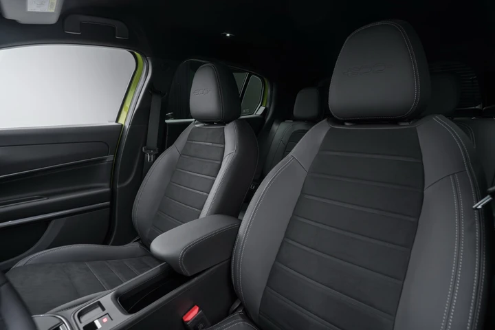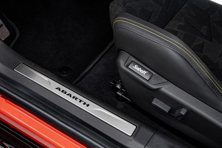 L’Abarth 600e ha la stessa impostazione, ma con un carattere decisamente più sportivo. I cerchi passano a 20 pollici con un design a chela di scorpione, e dietro i cerchi si nota l’impianto frenante Alcon con pinze Acid Green. All’interno regna l’Alcantara, che riveste il volante sportivo con il mirino al centro e i sedili Sabelt contenitivi, fondamentali per restare incollati al posto quando si spinge tra le curve. Su entrambe c’è uno schermo per l’infotainment da 10,25 pollici, ma sull’Abarth si aggiungono grafiche specifiche per il monitoraggio delle prestazioni in pista.