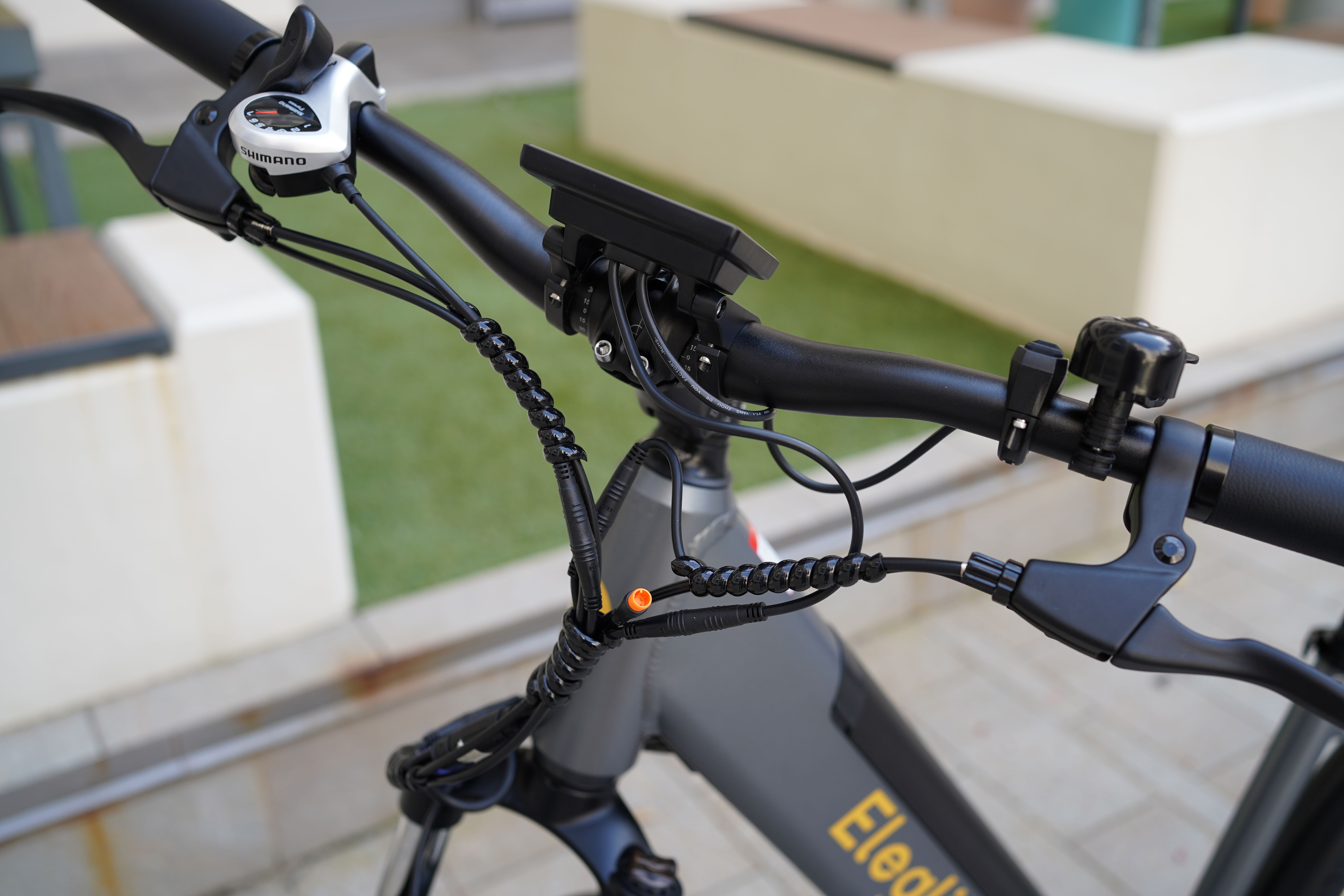 Semplicità quindi che ritroviamo anche nel cambio: anche in questo caso si tratta di una soluzione già vista su altre eBike, anche di brand italiani, ed è una soluzione che ben si sposa con la natura della Eleglide T1. Cambio base con 7 rapporti disponibili e un sistema di innesto delle marce molto basilare con un tasto che aumenta e una leva che diminuisce al resistenza del rocchetto posteriore.
