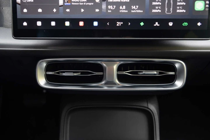 Anche l’abitacolo ha un’impostazione essenziale con alcuni richiami all’estetica e al minimalismo di Tesla. Lo schermo centrale flottante da 14,6 pollici con risoluzione 2.5K e chip Qualcomm Snapdragon 8155 è il protagonista della plancia. La reattività è notevole, paragonabile a quella di un tablet di fascia alta. Peccato però che non ci siano pulsanti fisici per gestire il climatizzatore, e che lo stesso impianto non sia disponibile bi-zona nemmeno come optional.