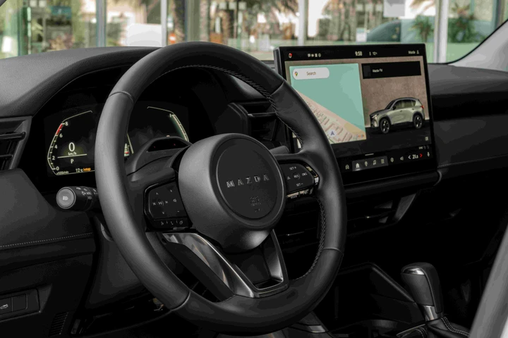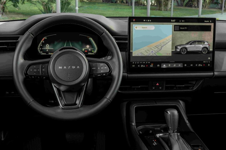 Davanti al conducente spicca un volante a tre razze che integra il nuovo lettering Mazda, oltre ai rinnovati tasti dal feedback aptico. Dietro al comando sterzo figura una strumentazione digitale personalizzabile e molto chiara nella sua interpretazione ma al centro della scena si trova un display da 15,6" che, oltre ad integrare ovviamente la connettività wireless con Apple CarPlay ed Android Auto, gode di tutti i servizi nativi di Google Automotive. Il touchscreen ha un funzionamento piuttosto fluido ed intuitivo anche se trovo che la sua presenza si distacchi di gran lunga da quanto Mazda ha fatto vedere negli anni.