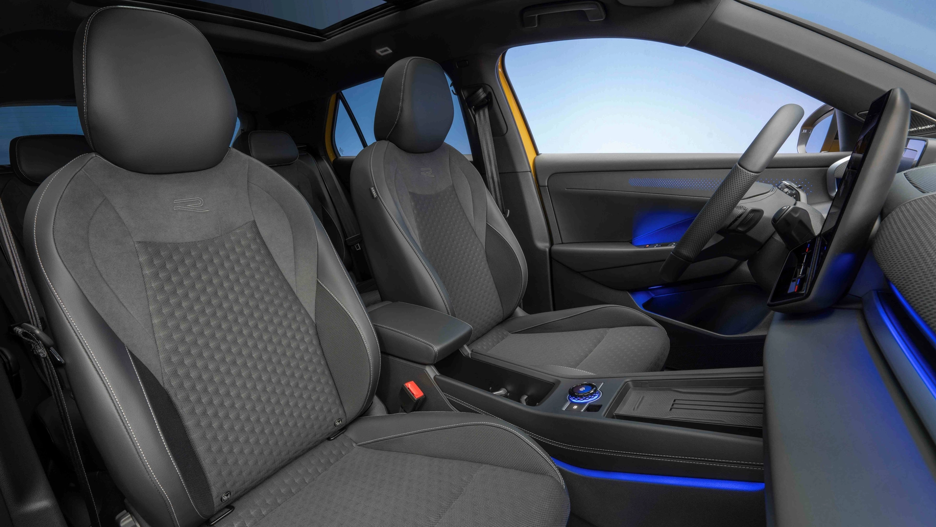 Dal punto di vista tecnologico, l’abitacolo è stato aggiornato con un nuovo Digital Cockpit da 10", un infotainment con display fino a 12,9", comandi touch retroilluminati e un Head-Up Display proiettato direttamente sul parabrezza. Il tutto è gestito attraverso un’interfaccia chiara, suddivisa in tre livelli (top bar, schermata home, bottom bar) con accesso rapido a funzioni e app. Molto interessante anche il nuovo rotore multifunzione della console centrale, già visto sulle sorelle maggiori Tiguan e Tayron, che serve per regolare le modalità di guida, il volume e persino gli scenari luminosi e sonori predefiniti. Non mancano dettagli curiosi, come le “Easter Eggs" visibili nei vani portaoggetti o il raffreddamento per la base di ricarica wireless dello smartphone. Infine, il cambio DSG si controlla ora da una leva sul piantone, grazie all’adozione della piattaforma MQB Evo, lasciando più spazio libero tra i sedili anteriori.