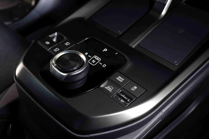 Nonostante non mi sia trovato particolarmente a mio agio con la forma e la posizione del volante, ho apprezzato molto l’attenzione alla funzionalità tipica giapponese, considerata la scelta di mantenere tasti fisici sul comando sterzo. Nel tunnel centrale trovano posto due prese di ricarica wireless non refrigerate e il selettore del cambio, oltre a tutti i tasti per la gestione delle modalità di guida.